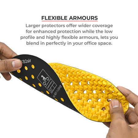 Note : Please note that the armour must be used with the yellow elements facing the body. If the armour is folded or bent or used with the yellow elements facing away from the body, the armour might get damaged. This is not covered under warranty.