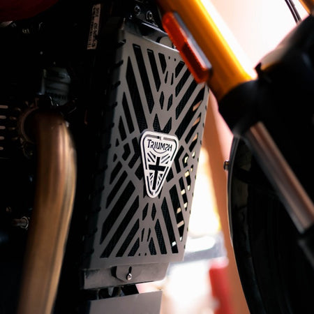 - Engineered for protection and durability, the Triumph Speed 400 Radiator Guard shields your radiator from debris and impacts while maintaining optimal airflow.