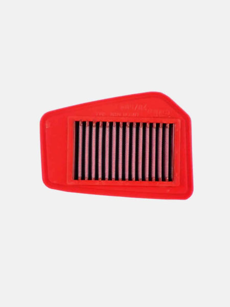 BMC Air Filters are manufactured using a proprietary molding process that yields a truly seamless part. These panel / cylindrical air filter are installed in the vehicle's original airbox to replace the OEM air filter. The characteristic red rubber is very pliable and conformable to ensure an airtight seal within your air box. Low viscosity oil soaked multi-layered cotton gauze is used to filter out particulates down to 7 microns yet overall flow is increased in comparison to OEM 10 microns paper elements. All this is covered with an epoxy coated alloy mesh to ensure protection from petrol fumes and oxidization due to air humidity.
