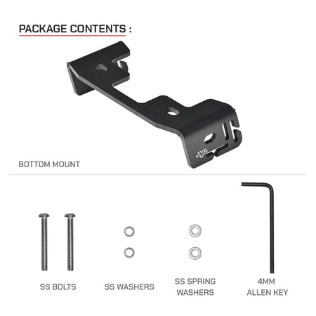 Use the included bolts and thread locker to fit the Bottom Mount