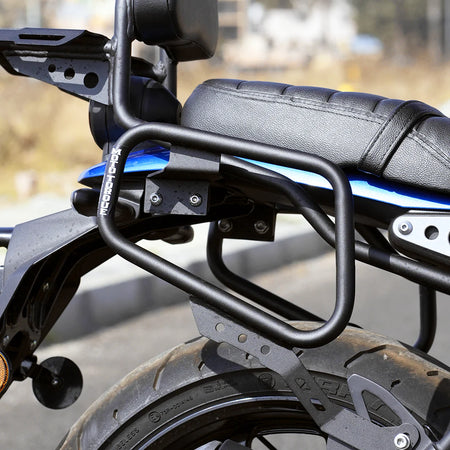 The saddle stay (black) designed for the Yamaha XSR 155 is a rear luggage support accessory that allows you to mount saddlebags, panniers or additional luggage securely to your motorcycle. Built from high-quality metal with a durable black powder-coated finish, it offers excellent corrosion resistance and long-lasting durability. The stay is engineered for a bolt-on fitment, using existing mounting points on the XSR 155 frame, so installation is straightforward and doesn’t require modifications. Its robust construction ensures stability for luggage during long rides or touring trips while maintaining the bike’s classic look.