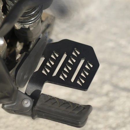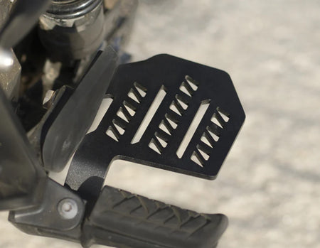 This gives a good comfort to the pillions foot and gives ample space to rest it during those long rides, also it gives protection from the heat burns towards the exhaust side.