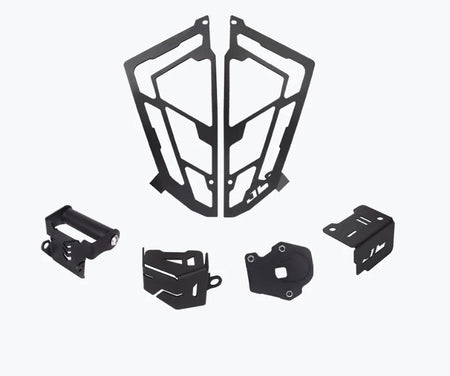 Includes: Headlight grill (1pcs), GPS mount (1pcs), Rear oil cap (1pcs), Front oil cap (1pcs), Side stand base (1pcs)