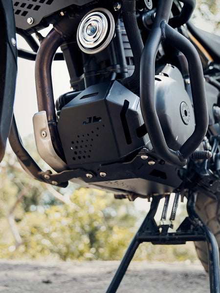 Protect your motorcycle's engine and underside with the JB Racing Himalayan 450 Bash Plate Mild Steel, now available at Bandidos Pitstop. Crafted from high-quality mild steel, this bash plate offers robust durability and reliable protection against impacts from rough terrain, debris, and obstacles. Designed to withstand the rigors of off-road riding, it shields vulnerable components from damage, ensuring your motorcycle's longevity and performance. The sleek and low-profile design minimizes aerodynamic drag while providing ample coverage, making it suitable for both on-road and off-road adventures. The JB Racing Himalayan 450 Bash Plate Mild Steel from Bandidos Pitstop is an essential accessory for riders seeking to safeguard their motorcycle during adventurous journeys.