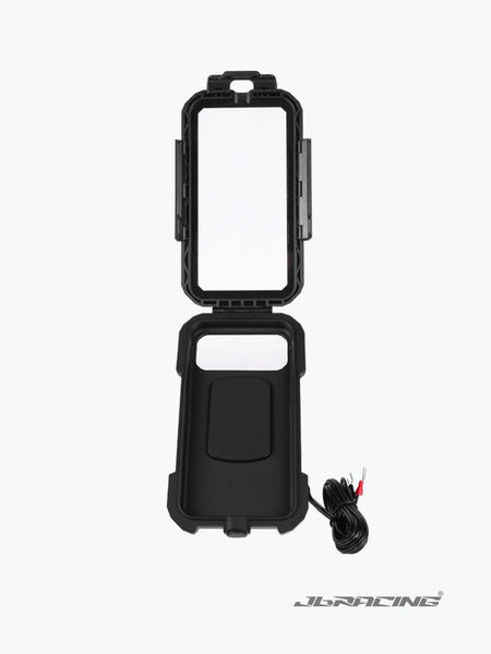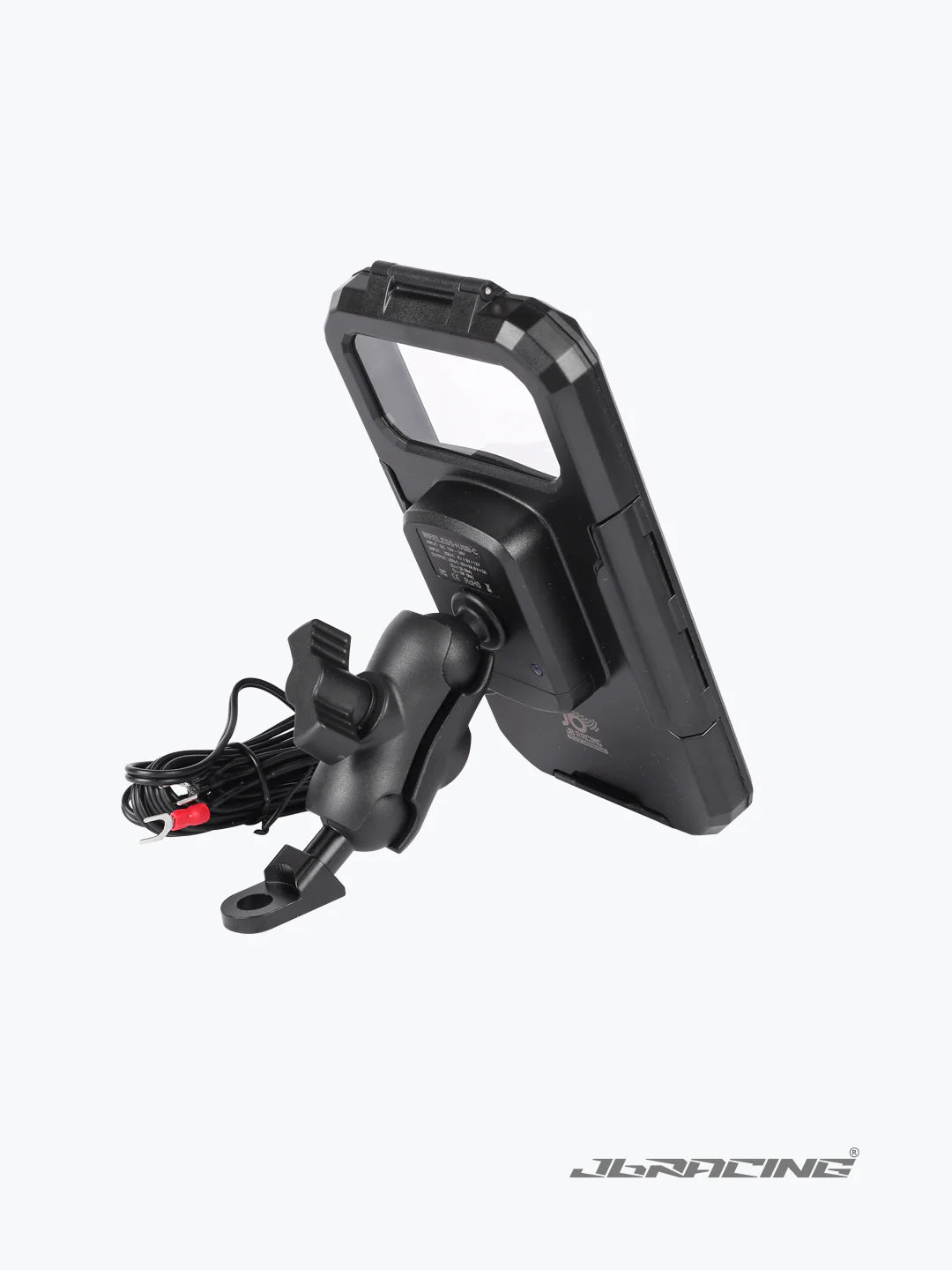 The M18S-A4 Motorcycle phone holder offers uninterrupted navigation even during heavy rain with a waterproof case. This product comes with a wireless USB-C charger, allowing you to keep your phone charged as you check the map for routes.