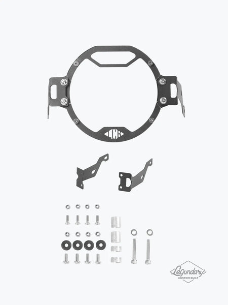 Includes: headlight grill (main body)- 1 no. clamp 1 ( LH)- 1 no. clamp 2 (RH)- 1 no.glass cover- 1 no. countersunk bolt m4x12 (SS)- 4 nos. philip washer head screw m5x12 (SS)- 4 nos. nylon insert jam lock nut m4 (SS) - 4 nos. nylon insert jam lock nut m5 (SS)- 4 nos. rubber gromets (ID5 x OD10 x 2) - 4 nos. hexagonal socket bolt m635 -4nos.spacer,od:14,,ID:6.5,l:16(al) - 2 nos. flat washer m6 - 4 nos.spacer,od:14,,ID:6.5,l:8(AL) - 2 nos
