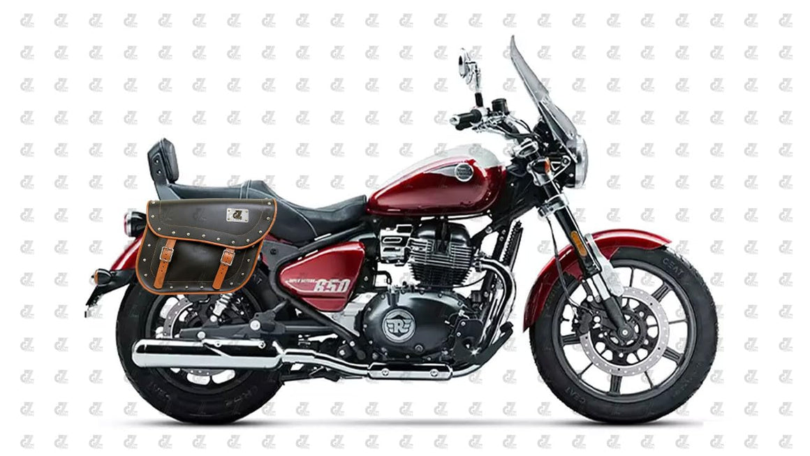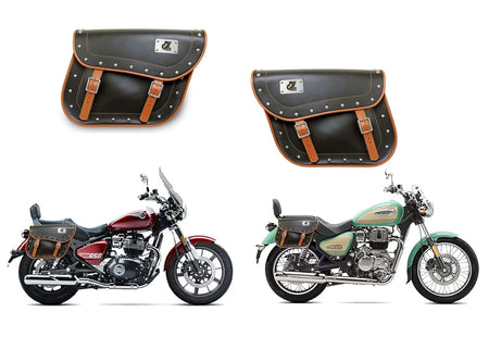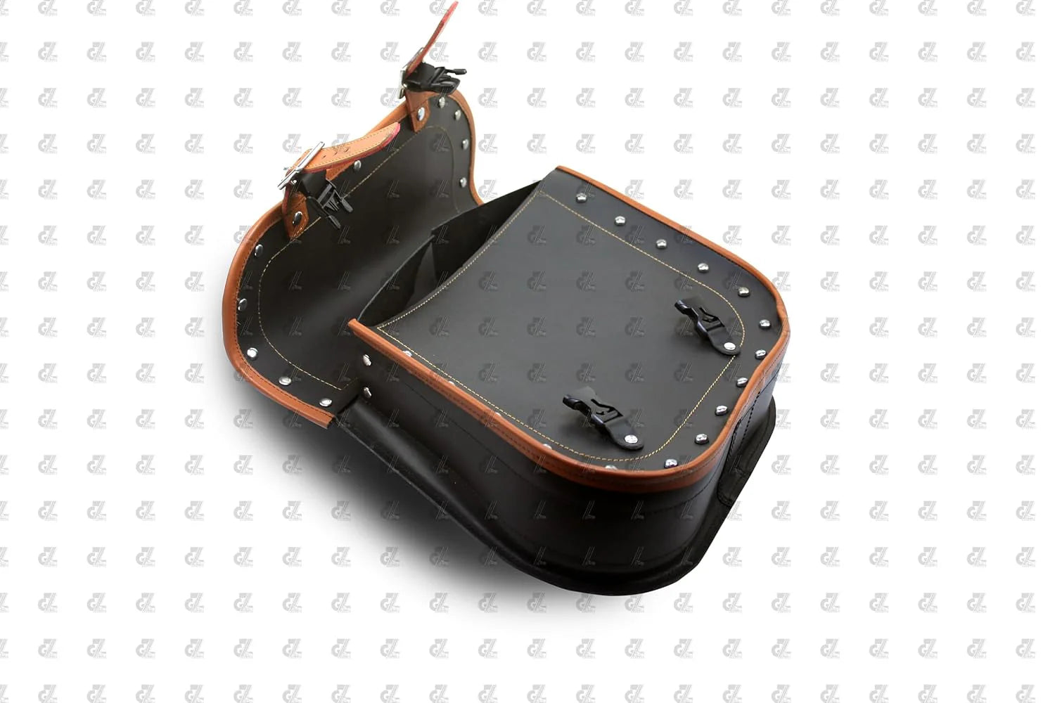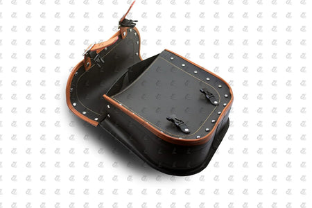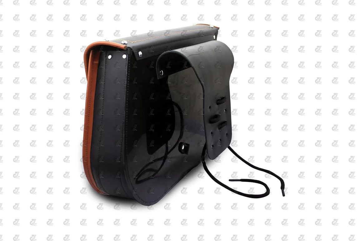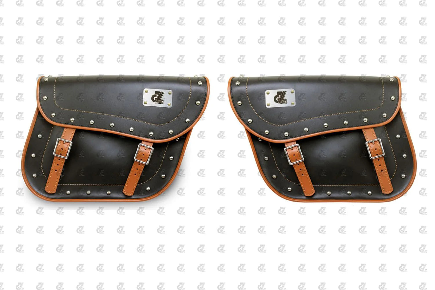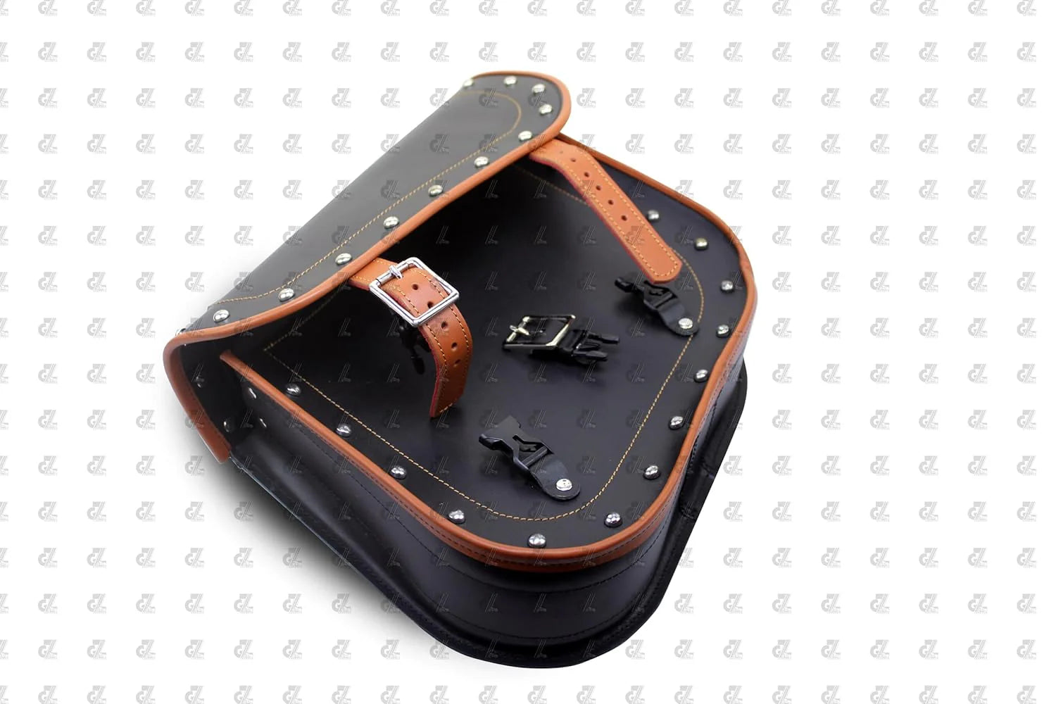 DOM Leather Bag Black with TAN Color Pair Left & Right Side Universal Motorcycle