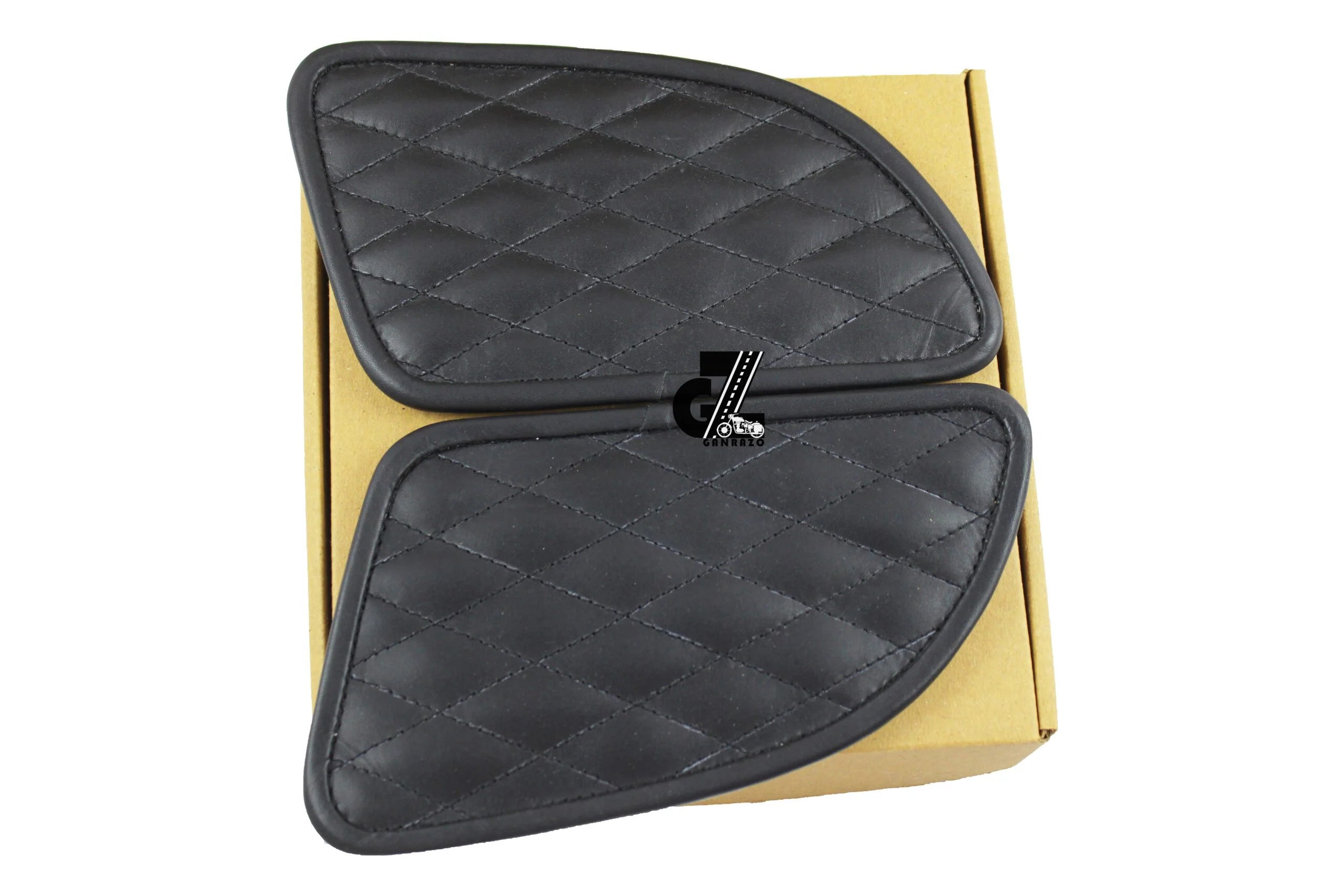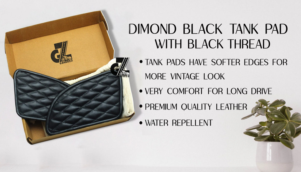 Leather Diamond Black Tank Pad with Black Thread Genuine Leather for Royal Enfield Continental Gt 650