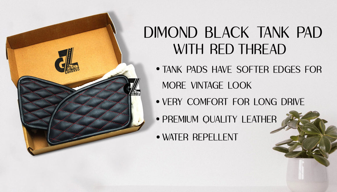 Leather Diamond Black Tank Pad with Red Thread Genuine Leather for Royal Enfield Continental Gt 650