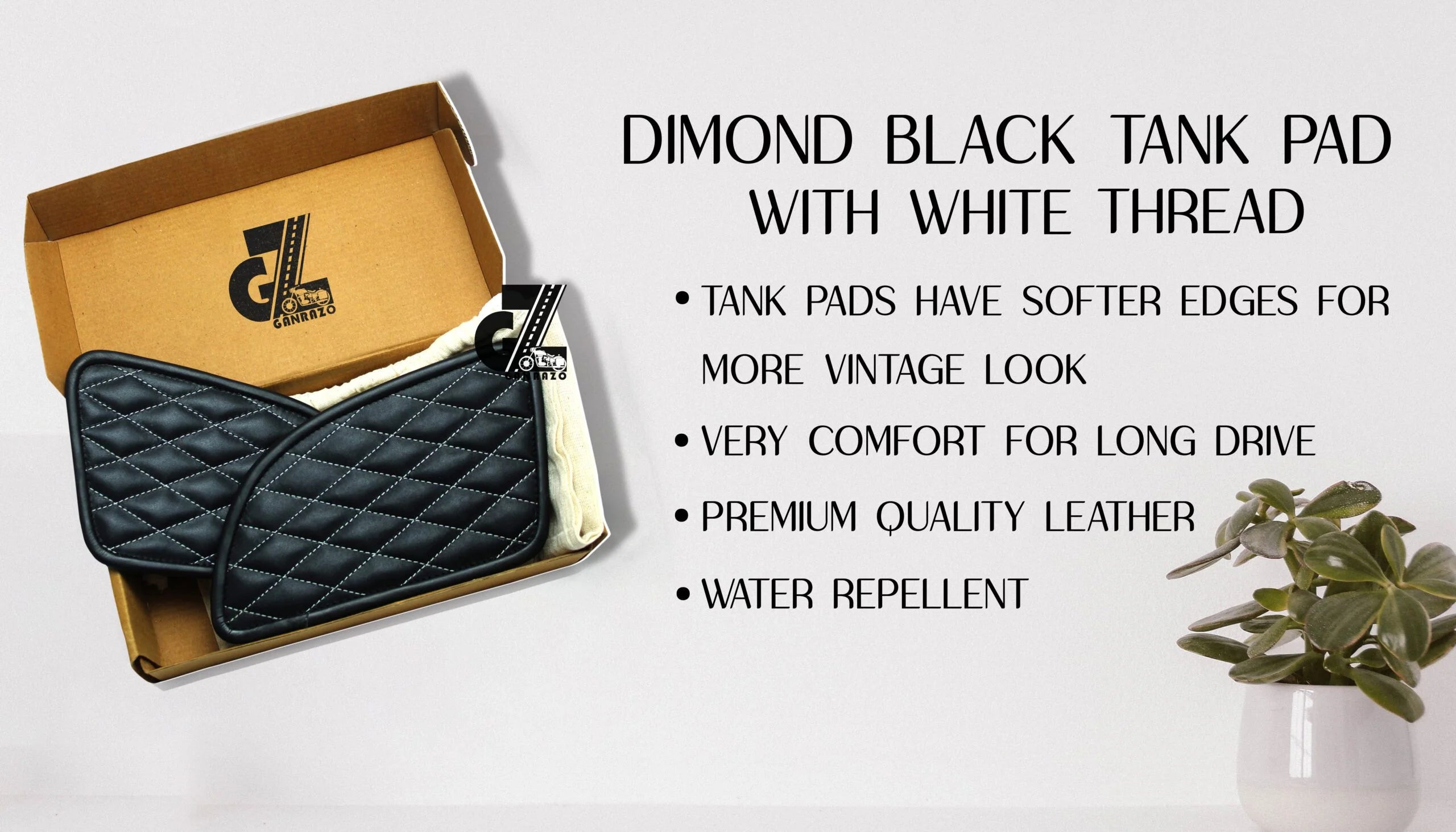 Leather Diamond Black Tank Pad with White Thread Genuine Leather for Royal Enfield Continental Gt 650