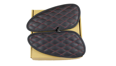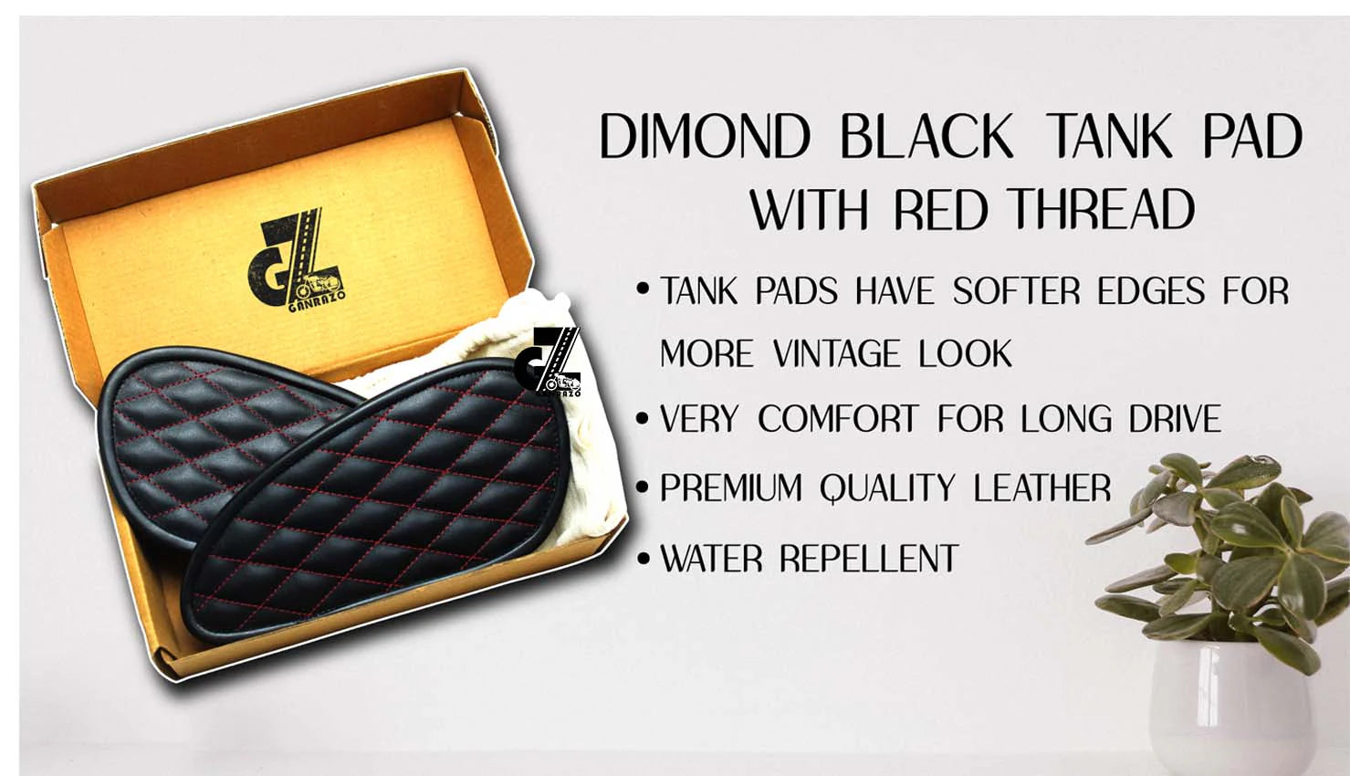 Leather Dimand Black Tank Pad with Red Thread Genuine Leather for Royal Enfield Interceptor 650