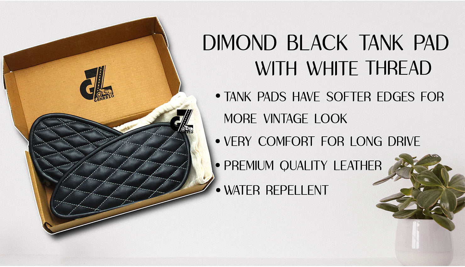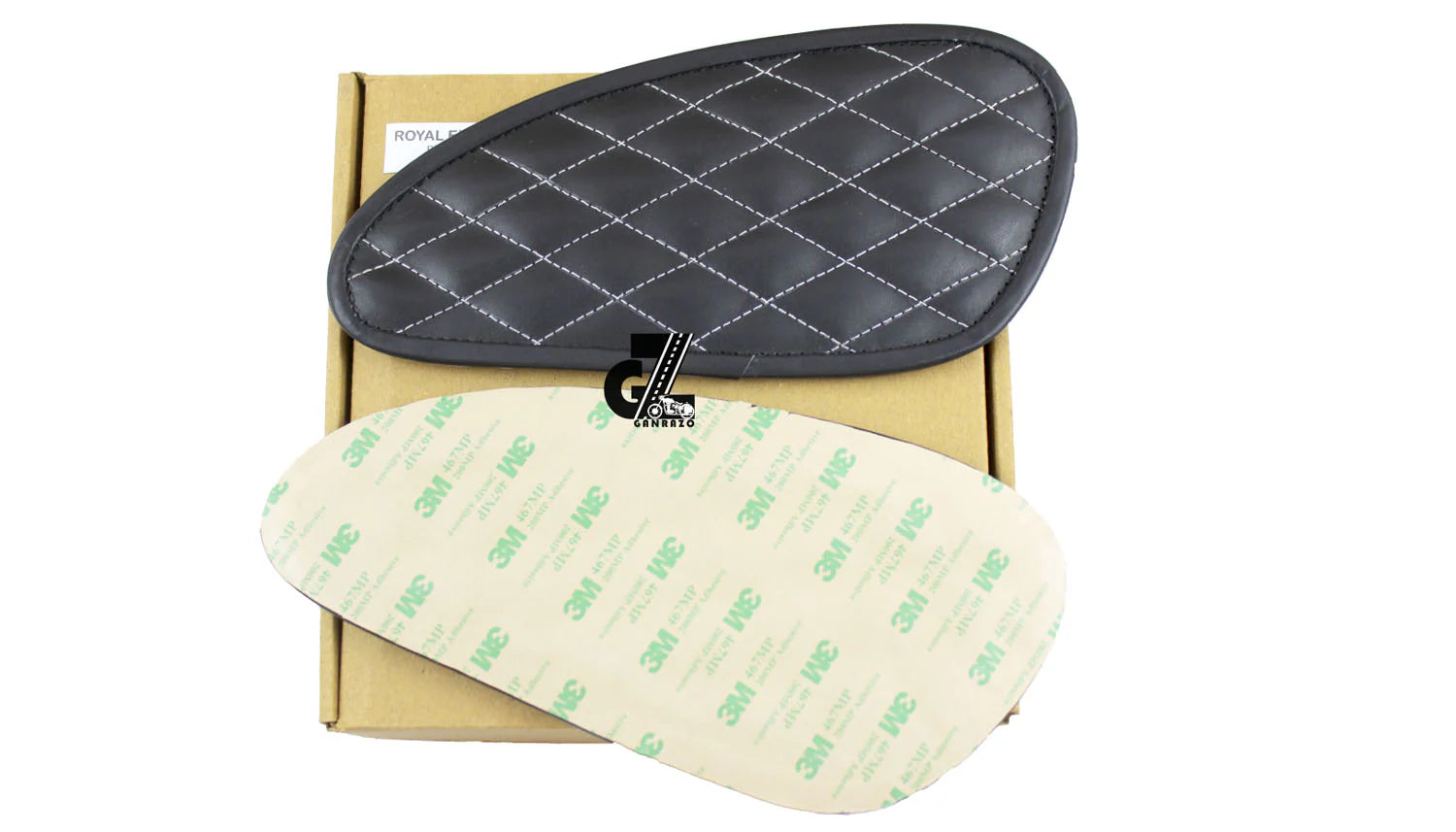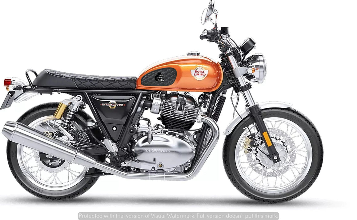 Leather Dimond Black Tank Pad with White Thread Genuine Leather for Royal Enfield Interceptor 650