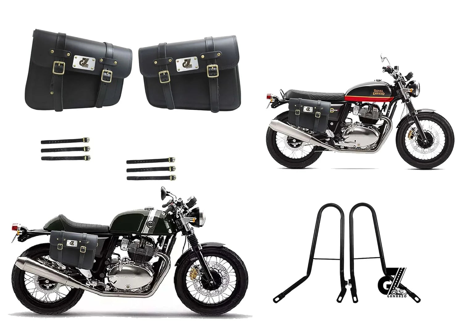 Leathe Saddle Pannier Bag Pair Black Color with Mount for Interceptor & Continental Gt 650