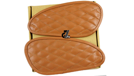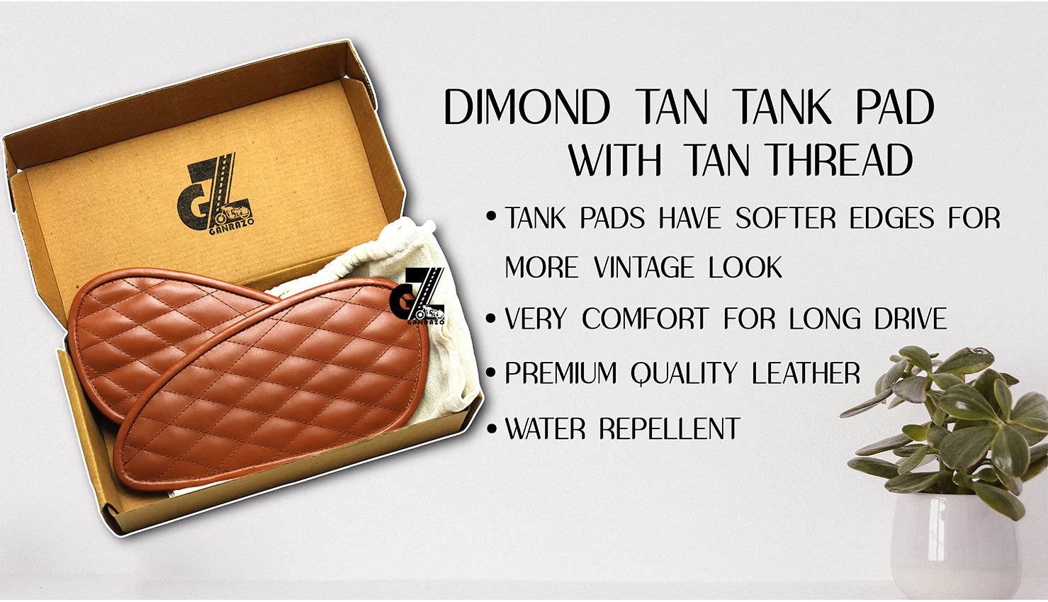 Leather Dimond Tan Tank Pad with Tan Thread Genuine Leather for Royal Enfield Interceptor 650