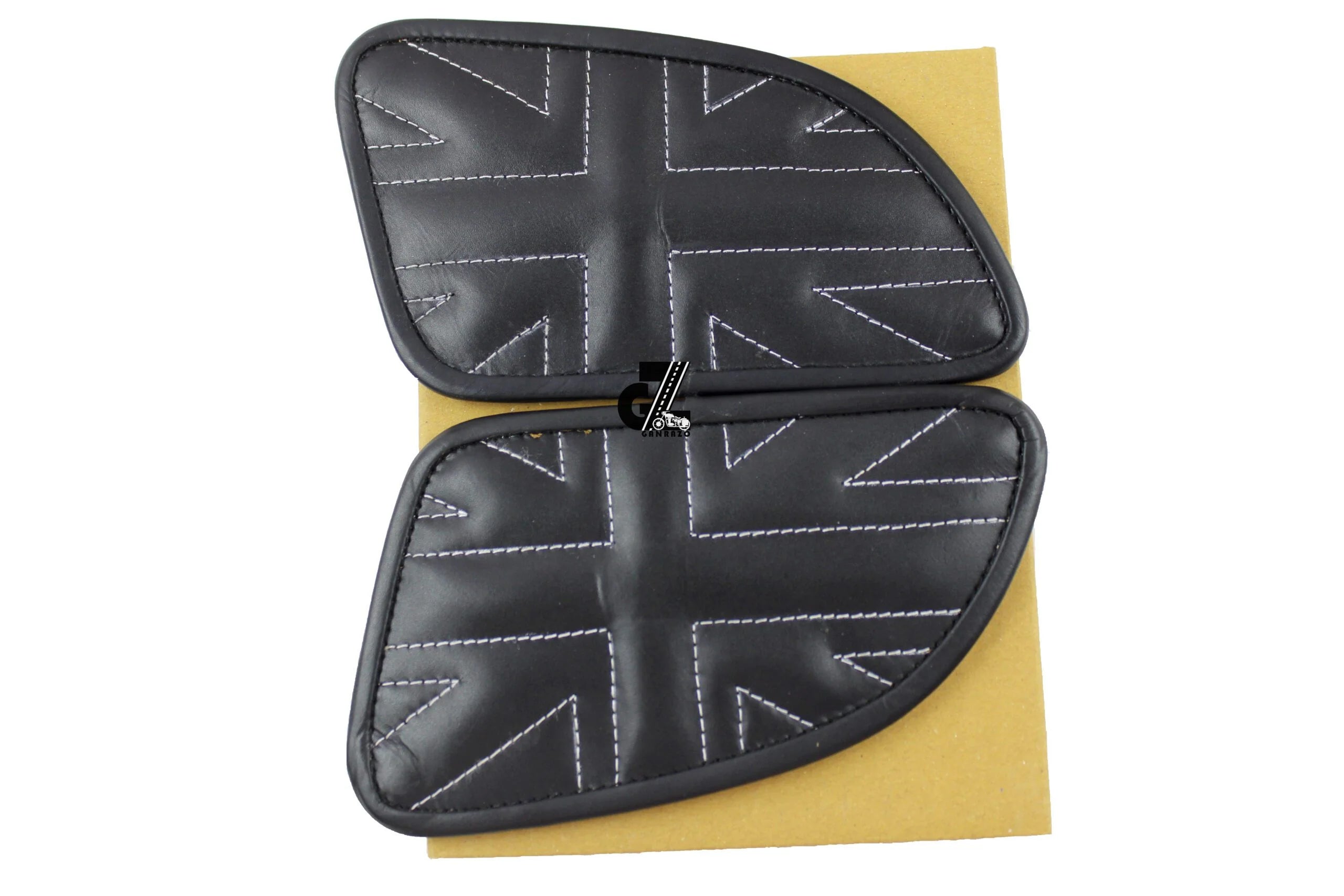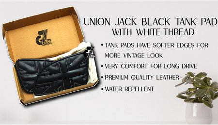 Leather Union Jack Black Tank Pad with White Thread Genuine Leather for Royal Enfield Continental Gt 650