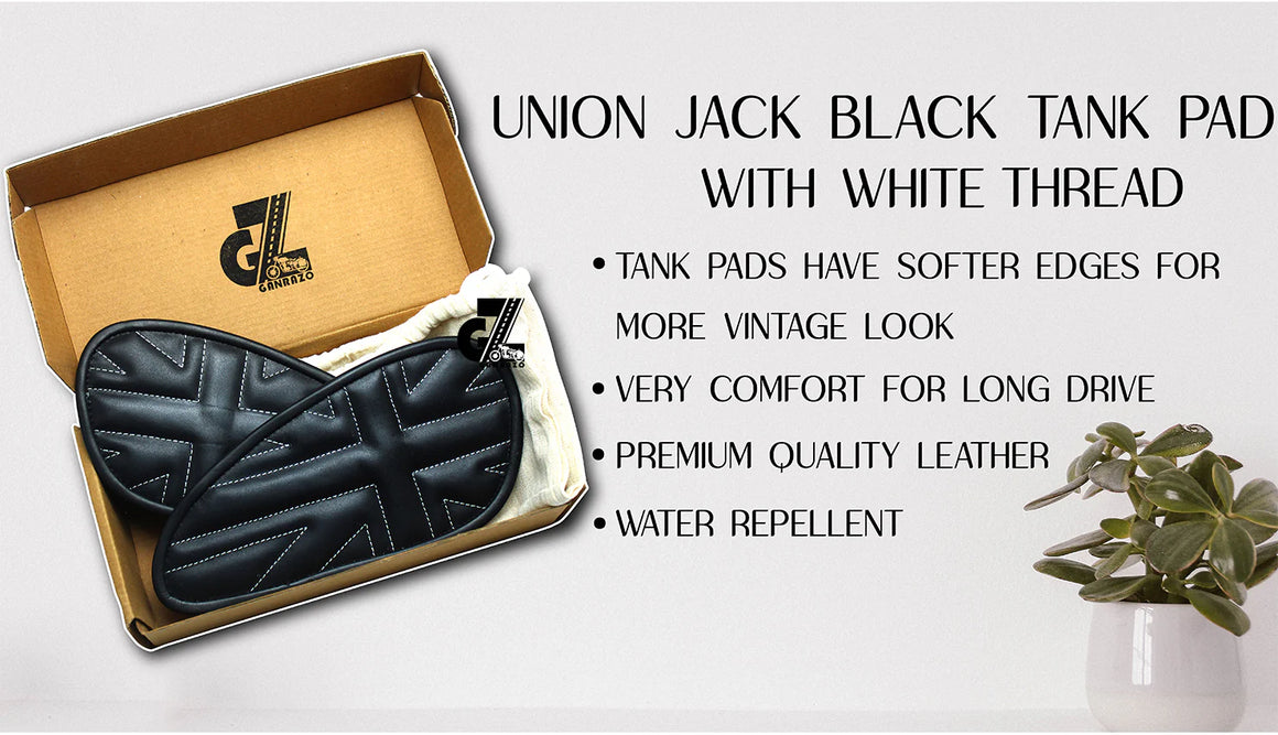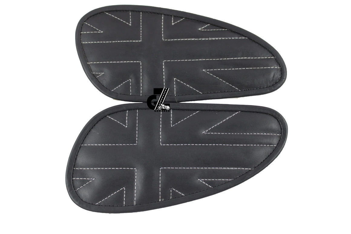 Leather Union Jack Black Tank Pad with White Thread Genuine Leather for Royal Enfield Interceptor 650