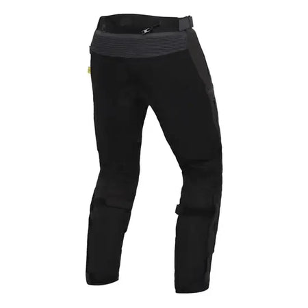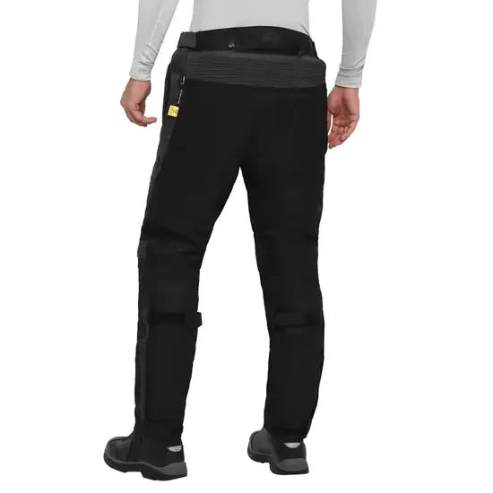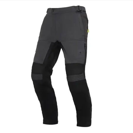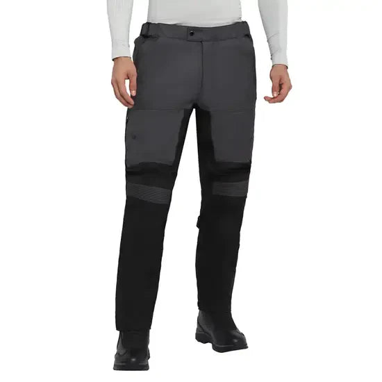 ROYAL ENFIELD TSO KAR RIDING TROUSERS BLACK & GREY Tso Kar Riding Trouser is a CE certified trouser, made up of 600 D, high abrasion resistant, and rainproof polyester fabric. This trouser also has a ventilation system with zippers at the thighs. Accordion panels at knee and back to provide ease in the stretch. It comes with a winter liner too. Soft mesh lining inside. Knox level 2 protection at knees and KNOX hip protectors at side hip area. Zippers at the bottom with gusset for easy entrance and exit and adjustment of high-rise riding boots.
