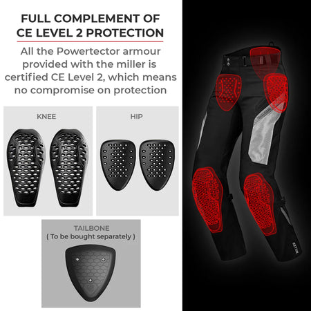 The PowerTector CE level 2 armor for knees (Type B) and hip offer exceptional protection, while the strong and durable 600D woven fabric in impact areas provides additional abrasion resistance. The pants are designed keeping ergonomics in mind, and feature pre-curved knees with stretch in the crotch area to provide optimal comfort while riding. In addition, the pants have strategically placed reflectives that enhance visibility and safety in low-light conditions.