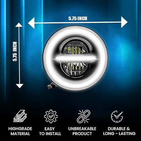 MOTO GENIUS 5.7 Inch LED Round Headlight for Harley Davidson & Bajaj Avenger Motorbike (Line Design)