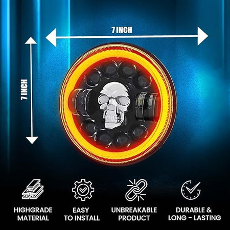 MOTO GENIUS 7 Inch LED Round Headlight for Royal Enfield & Thar (SKULL Design)