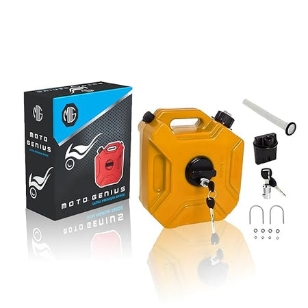 Moto Genius Universal 5 Liter Fuel Jerry Can Gold With Clamp and Cap For Motorcycles