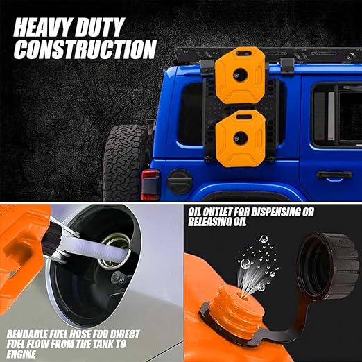 - Heavy-Duty Construction: Made from high-quality, durable materials, this fuel can is designed to withstand the rigors of the road. Its robust design is resistant to rust, corrosion, and impacts, ensuring that it can handle the challenges of any environment—be it rain, mud, or extreme temperatures.