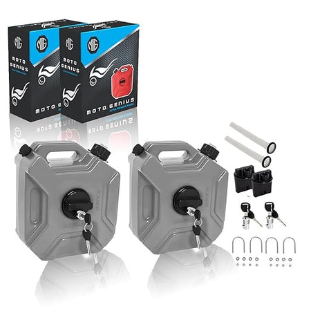Moto Genius Universal 5 Liter Fuel Jerry Can Grey With Clamp and Cap (pack Of 2) For Motorcycles