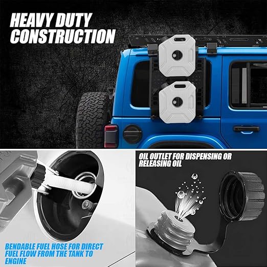 - Heavy-Duty Construction: Made from high-quality, durable materials, this fuel can is designed to withstand the rigors of the road. Its robust design is resistant to rust, corrosion, and impacts, ensuring that it can handle the challenges of any environment—be it rain, mud, or extreme temperatures.
