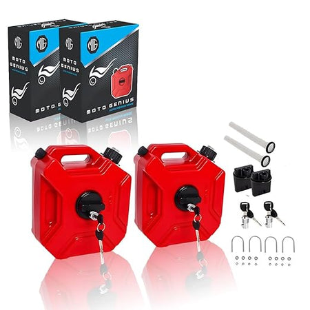 Moto Genius Universal 5 Liter Fuel Jerry Can Red With Clamp and Cap (pack Of 2) For Motorcycles