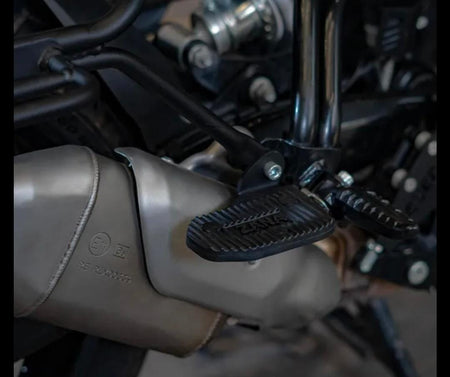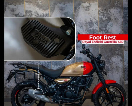 Ideal for riders seeking a dependable and stylish Rear Footrest for Royal Enfield Guerrilla 450, this accessory combines durability, comfort, and a patented design for enhanced riding experience.