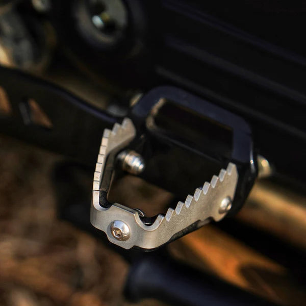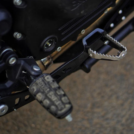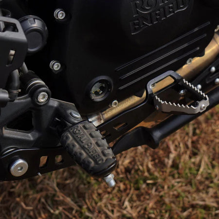 Upgrade your Royal Enfield Guerrilla 450 with Auto Engina's redesigned brake pedal. Built for touring, it offers enhanced responsiveness and comfort, with a flat-foot resting area. Crafted from a combination of mild steel and stainless steel, this brake pedal provides better control and durability, making it a premium upgrade over the stock pedal.
