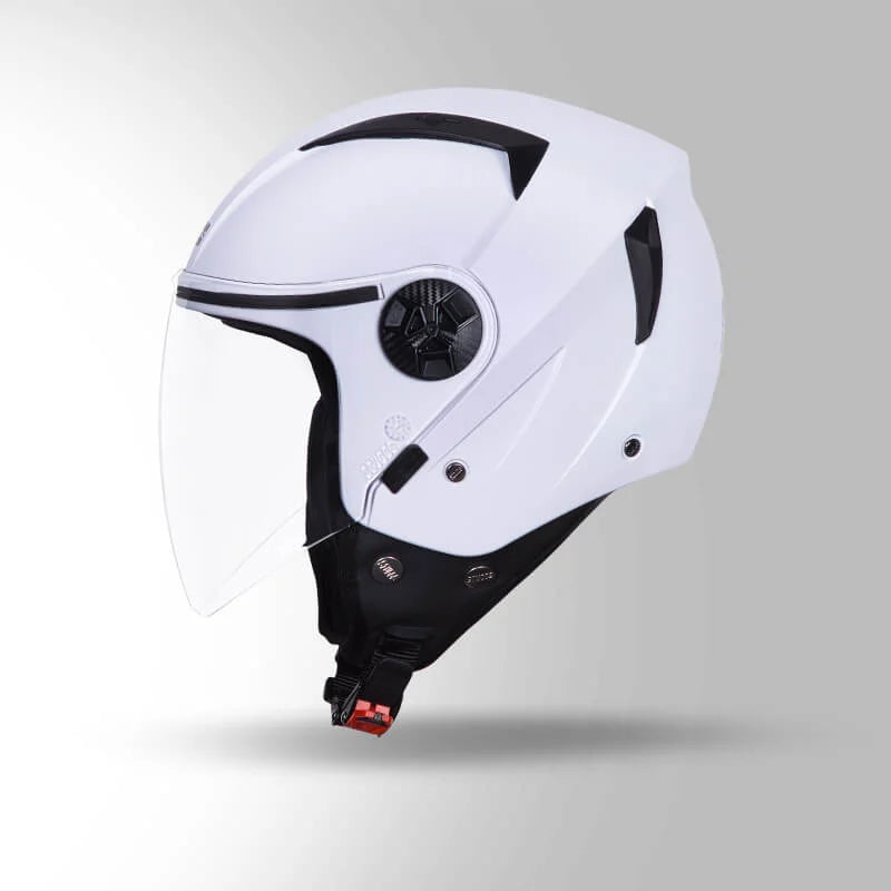 STUDDS VOGUE ECO is an open face motorcycle and two-wheeler helmet for both men and women riders. VOGUE ECO is a high impact open face helmet with product features like hypoallergenic liner, regulated density EPS, quick release chin strap and top air vents. VOGUE is available in various sizes and vibrant color options. It redefines lightweight comfort without compromising on safety. ISI certified, its robust shell ensures optimal impact resistance. The hypoallergenic, removable, and washable interior provides unmatched comfort. With advanced ventilation, a quick-release buckle, and a range of vibrant colors, the Vogue ECO is a fashion-forward choice for riders who demand style, safety, and freedom on the road.