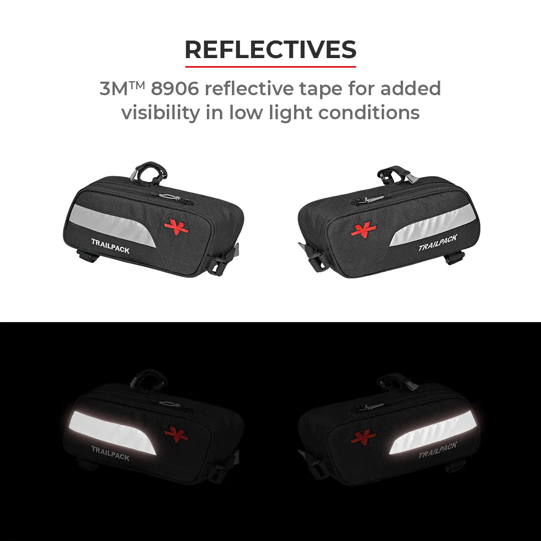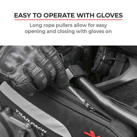 Introducing the ViaTerra Trailpack set for the KTM Adventure 390/250 - a specially designed luggage system that fits snugly within the OEM crash guards, providing easy access to the essential gear you need on the road. With a 4L total capacity, these bags are perfect for carrying spare parts, extra tubes, energy bars and other items you may need on the trail. The unique design ensures that the bags fit securely and do not impede any other luggage you may be carrying, even at high speeds on the highways or during rough trail rides. These bags are a must-have for any adventurous rider looking to keep their gear organized and protected while pushing the limits of their riding abilities.