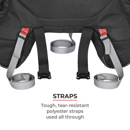 Webbing: Tough, tear-resistant polyester webbing used all through