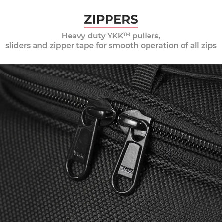 Zippers & Pullers: Only genuine YKK™ sliders and zipper tape is used in all our products. You can check the underside of the slider for the embossed “YKK” logo.