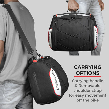 Don't let its streamlined design fool you – the ViaTerra Element Tailbag is a versatility powerhouse waiting to fuel your motorcycle escapes. This 35L wonder packs enough punch for 3-5 day adventures, making it your perfect go-to for weekend warriors and spontaneous explorers.