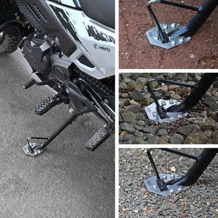 Imagine this: You reach that breathtaking vista point, ready to soak in the panoramic views. But the soft ground swallows your sidestand, sending your Xpulse tilting precariously. Not with the ViaTerra Shoe! Its generous footprint acts like a trusty Sherpa for your bike, distributing weight evenly and keeping it upright even on sand, gravel, or that sketchy patch of mud.