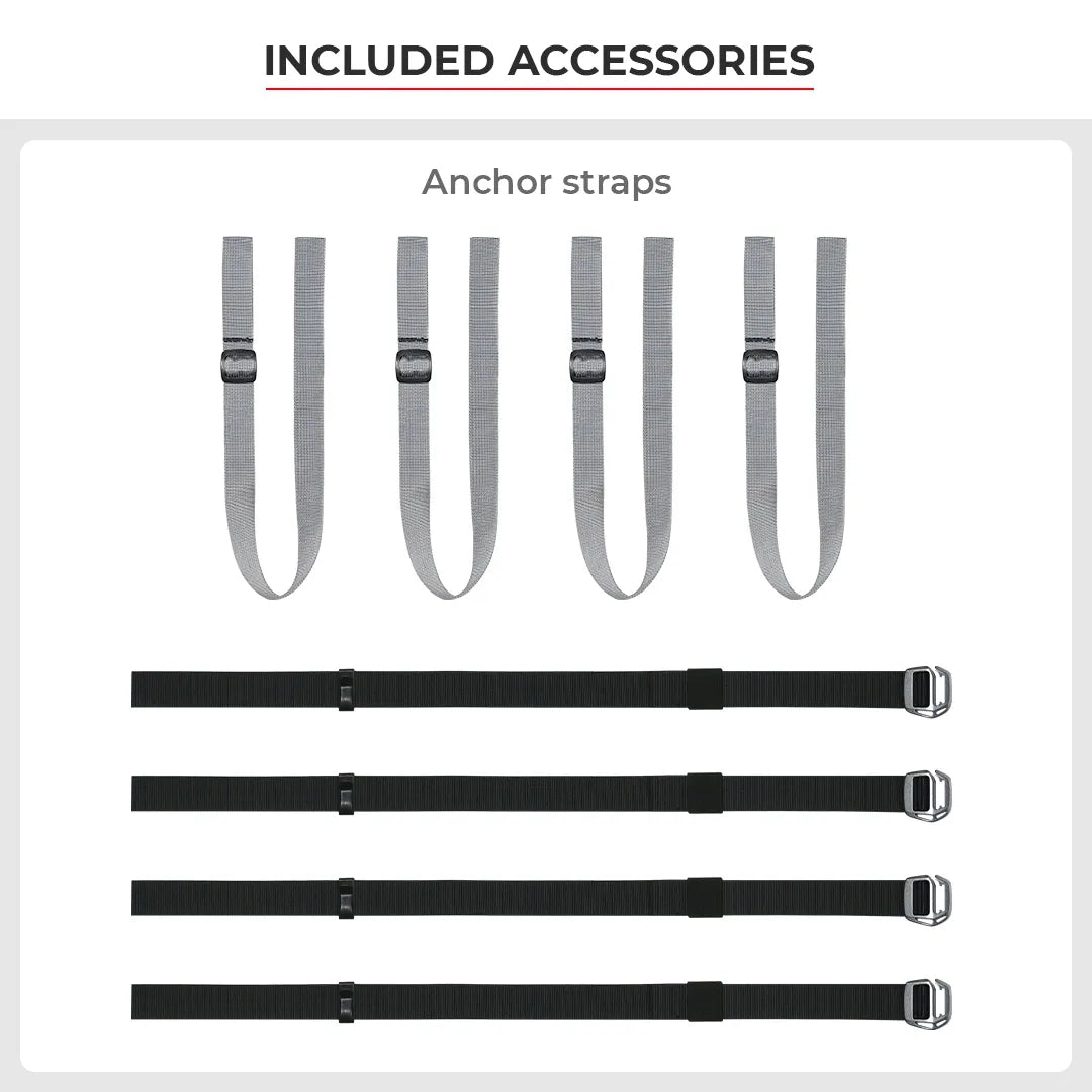 - Tough, tear-resistant High Tenacity polyester webbing used all through