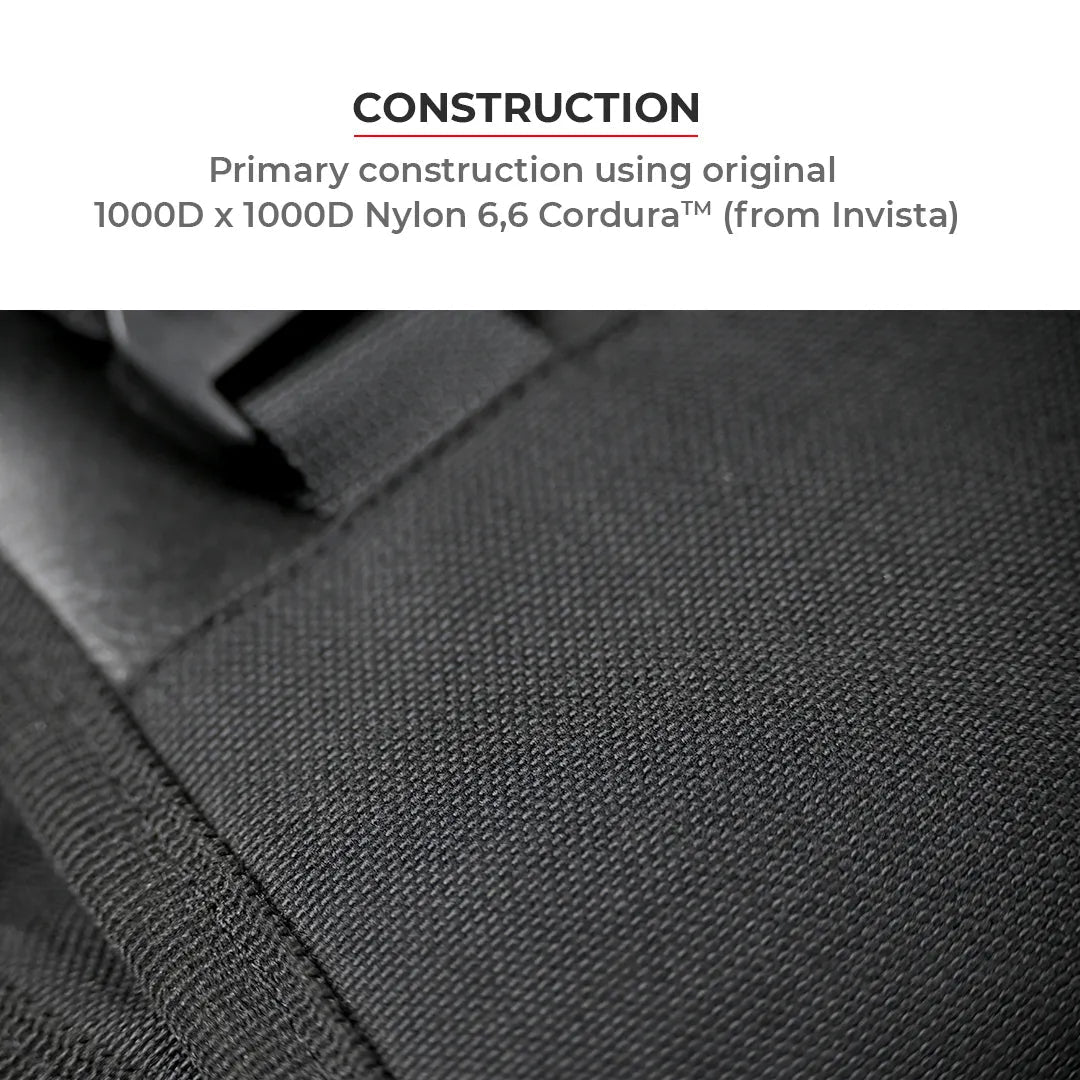 - Cordura™ 1000D x 1000D Nylon 6,6 outer fabric with PU/WR sourced from Invista authorized factory