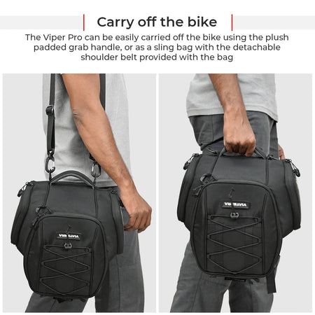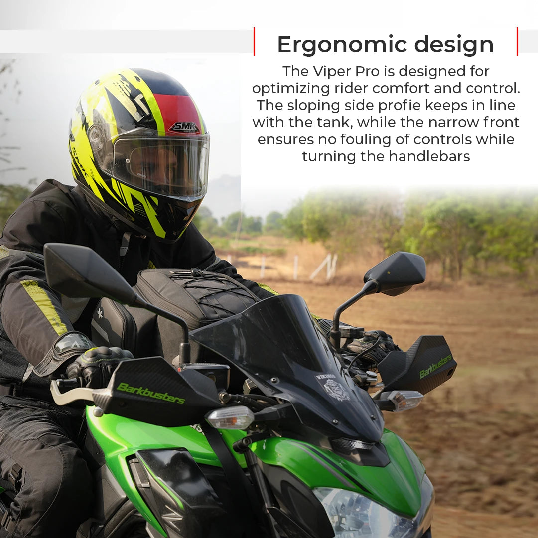 Blending sleek style with tough durability, the all new ViaTerra Viper Pro is a versatile tank bag designed with modularity in mind. Its carefully crafted design, impressive looks, and durability make it truly standout. Plus, its buckle-based mounting system makes refueling on the go a breeze. Get set to elevate your riding experience with the feature-packed Viper Pro Tank Bag.