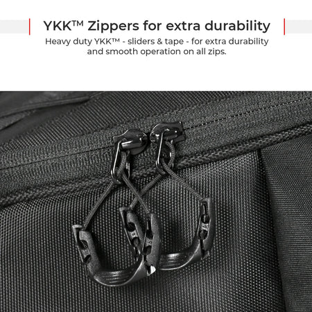 Original & authentic materials Heavy duty YKK™ (the world's best!) is used across our range - pullers, sliders & tape - for extra durability and smooth operation on all zips. You can check the underside of the slider for the embossed “YKK” logo.