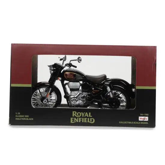 This 1:12 scale model is a faithful replica of the Royal Enfield new Classic 350 in its latest avatar, a tribute to one of the most charming and best-loved Royal Enfield motorcycles of all time.