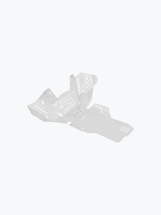 The Aluminium Bash Plate Silver for KTM Adventure 890 available at Legundary Custom Built is designed to provide premium protection and style for serious adventure riders. Crafted from lightweight yet durable aluminium, this bash plate offers exceptional resistance against impacts from rocks, debris, and rough terrain while keeping the bike's weight in check. The sleek matte silver finish not only enhances the rugged aesthetic of the bike but also ensures resistance to corrosion and harsh weather conditions. Engineered specifically for the KTM Adv 890 it features precision-cut contours and strategically placed vents for optimal airflow and efficient engine cooling. Whether you're riding through challenging off-road trails or navigating urban roads, this bash plate delivers reliable under body protection without compromising performance or looks.