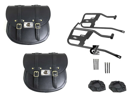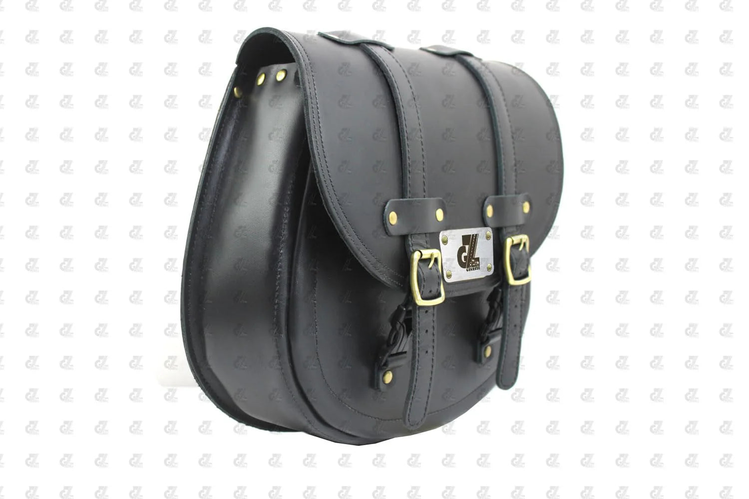 Black Leather Saddle Bag with Saddle Stay Pair For Hunter 350
