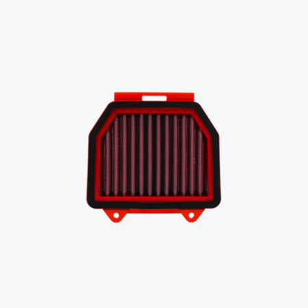 The BMC FM01043 high performance air filter is engineered as a direct drop-in replacement for the Honda CB300 R (2018-on) and similarly compatible models. Available at Bandidos pitstop. It utilises a premium Italian-manufactured full-moulding design, featuring multi-layered cotton gauze media soaked in low-viscosity oil and wrapped in an epoxy-coated alloy mesh for superior filtration and durability. The filter is capable of blocking particles as fine as 7 microns better than many standard paper filters rated around 10 microns while achieving improved airflow for enhanced throttle response and engine efficiency. With its pre-oiled finish and washable/ reusable construction, the FM01043 offers a longer lifespan and lower maintenance cost for riders looking to upgrade their machine’s breathing capability.