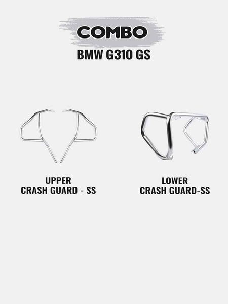 Roads are unpredictable and a rider must always protect his bike from crashes. Which is where the crash guards comes into the picture. Protect your BMW G310 GS with this combo of upper and lower crash guards.Our upper and lower crash guards are not suitable with our Upper/lower crash guards. Can only suitable with our listed upper and lower crash guards