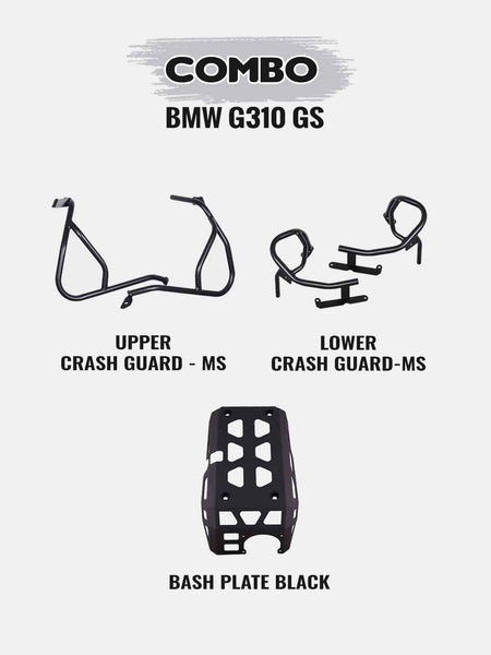 BMW G310GS COMBO - UPPER CRASHGUARD BLACK+LOWER CRASHGUARD BLACK+ENGINE GUARD BLACK