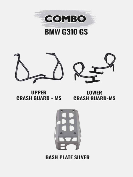 BMW G310GS COMBO - UPPER CRASHGUARD BLACK+LOWER GRASHGUARD BLACK+ENGINE GUARD SILVER