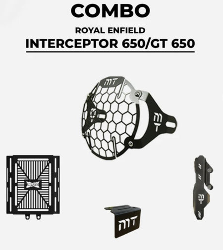 This set of 4 Interceptor/GT 650 combo can protect your motorcycle Headlight Grill, Radiator Guard, Disk Oil Guard & Rear Master Cylinder Guard.