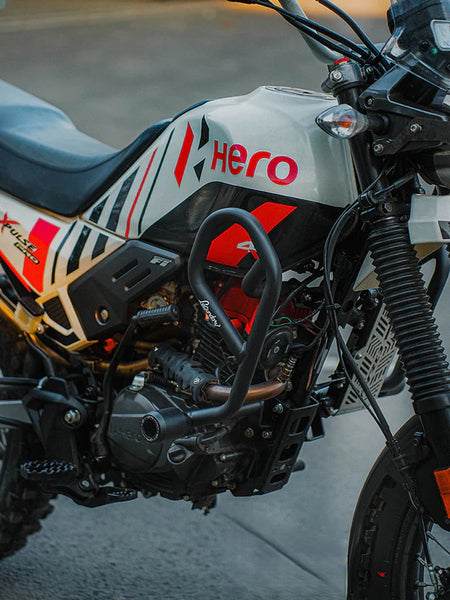 The Legundary X Pulse 200 4V Pro Defender Crash Guard, available at Legundary Custom Built, is a must-have accessory for adventure riders seeking enhanced protection and style. Crafted from high-quality mild steel, this crash guard provides superior durability and impact resistance, shielding your bike’s engine and frame from accidental falls and rough terrain impacts. Designed with a sporty red, white, and black color combination, it adds an aggressive and stylish touch to your motorcycle while maintaining its rugged functionality. The precision-engineered fit ensures easy installation without any major modifications. Whether you’re tackling off-road trails or urban streets, this crash guard enhances safety while complementing the bold look of your Xpulse 200 4V Pro.